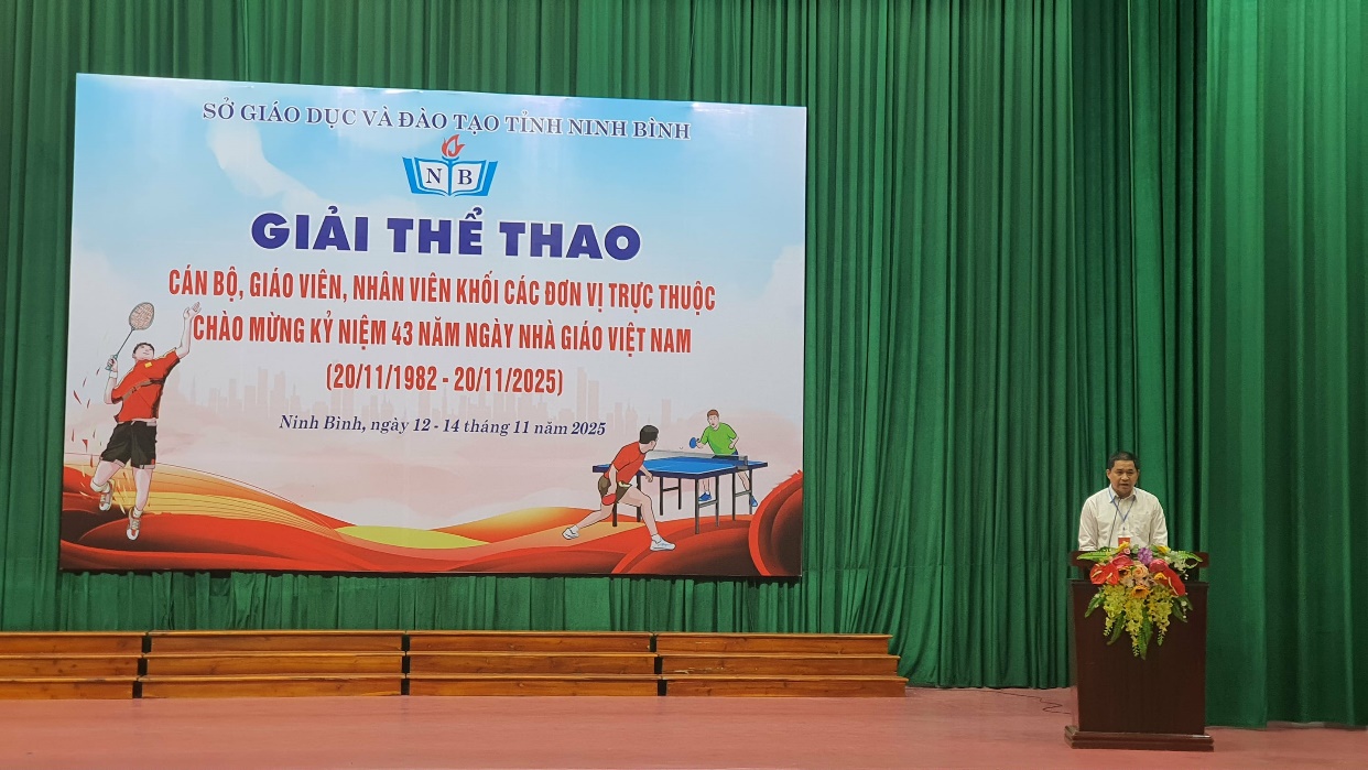 Trong thời đại chuyển đổi số – khi trí tuệ và công nghệ được tôn vinh – thể thao vẫn nhắc chúng ta nhớ rằng: Sức mạnh của con người vẫn khởi đầu từ sức khỏe, từ ý chí và tinh thần đồng đội. Để chào mừng thành công Đại hội Đảng các cấp, hướng tới Đại hội Đảng toàn quốc, kỉ niệm 43 năm Ngày Nhà giáo Việt Nam (20/11/1982 – 20/11/2025), sáng ngày 12/11/2025, Sở Giáo dục và Đào tạo (GDĐT) tỉnh Ninh Bình long trọng tổ chức Lễ khai mạc Giải thể thao cán bộ, giáo viên, nhân viên khối các đơn vị trực thuộc Sở GDĐT tỉnh Ninh Bình năm 2025.